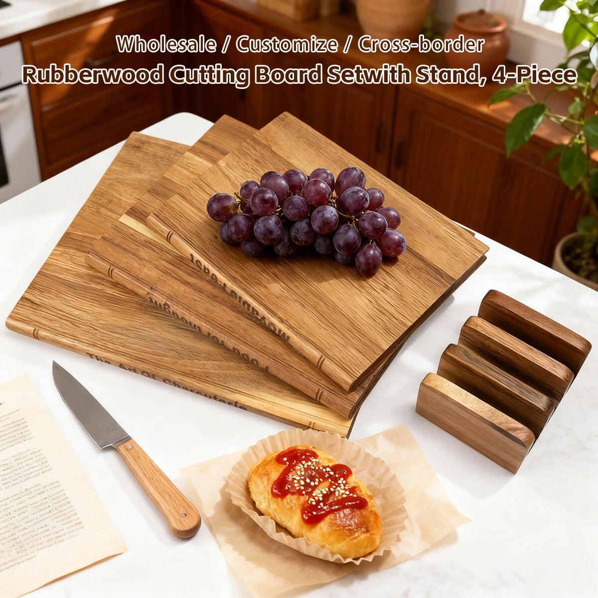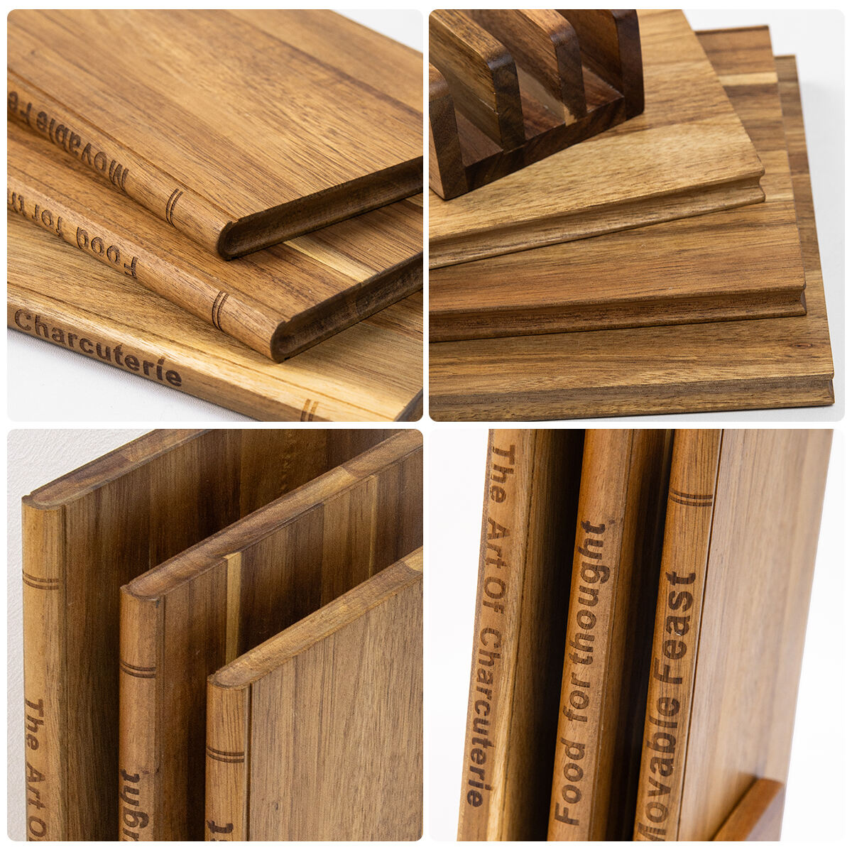 Maximize Kitchen Aesthetics & Functionality. Present our innovative 3-Piece Acacia Wood Cutting Board Set, uniquely designed to resemble a stack of books. This set solves two problems at once: providing three distinct, high-performance cutting surfaces for food prep, and transforming into an elegant decorative piece when stored on its included stand. Certified food-safe by FDA and LFGB, it's a high-margin product perfect for Amazon FBA sellers and OEM brands targeting style-conscious homeowners.