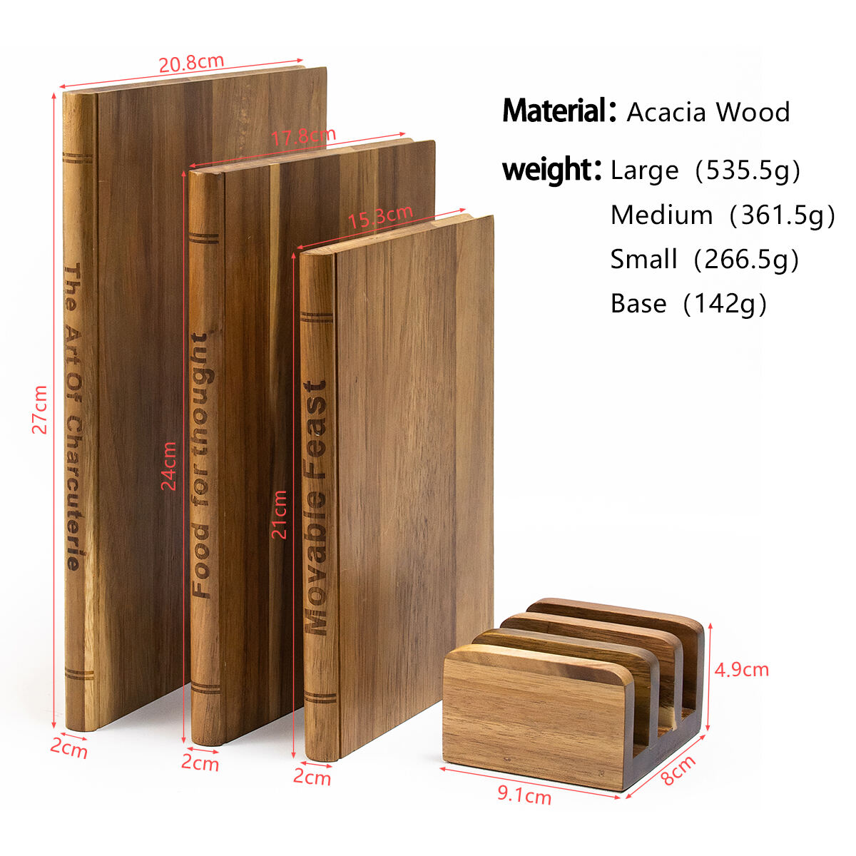 Uniquely Book-Inspired Design: This set revolutionizes kitchen storage. When not in use, the three differently sized square boards stand upright on the included wooden holder, instantly transforming into a chic, space-saving decorative item that adds a touch of warmth and intellect to any countertop.