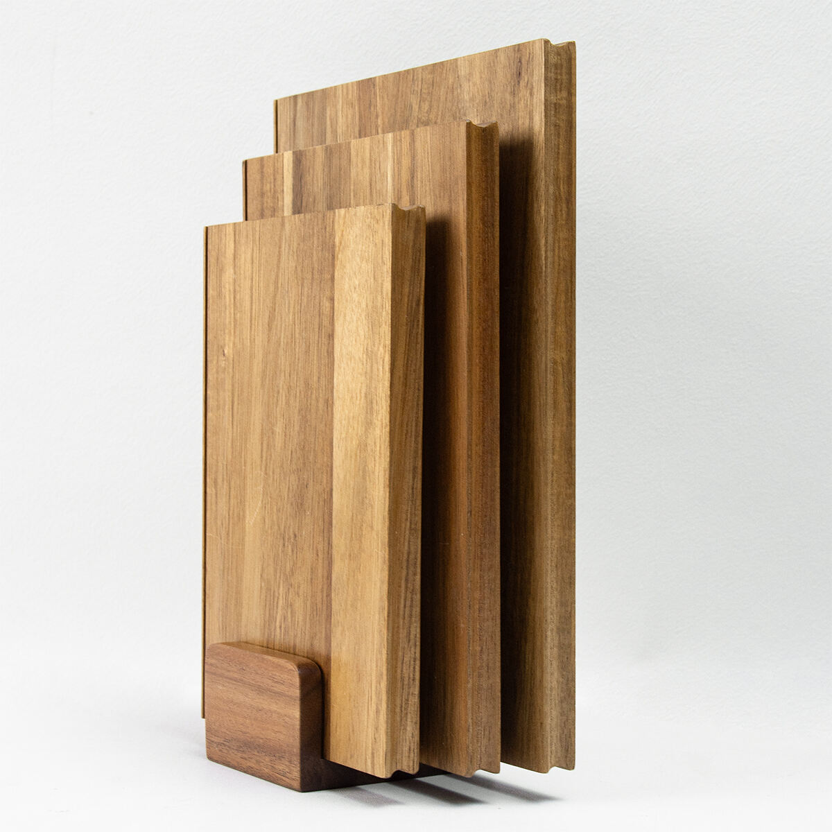 Set Includes: 3 x Square Cutting Boards (Small, Medium, Large) + 1 x Wooden Display Stand.