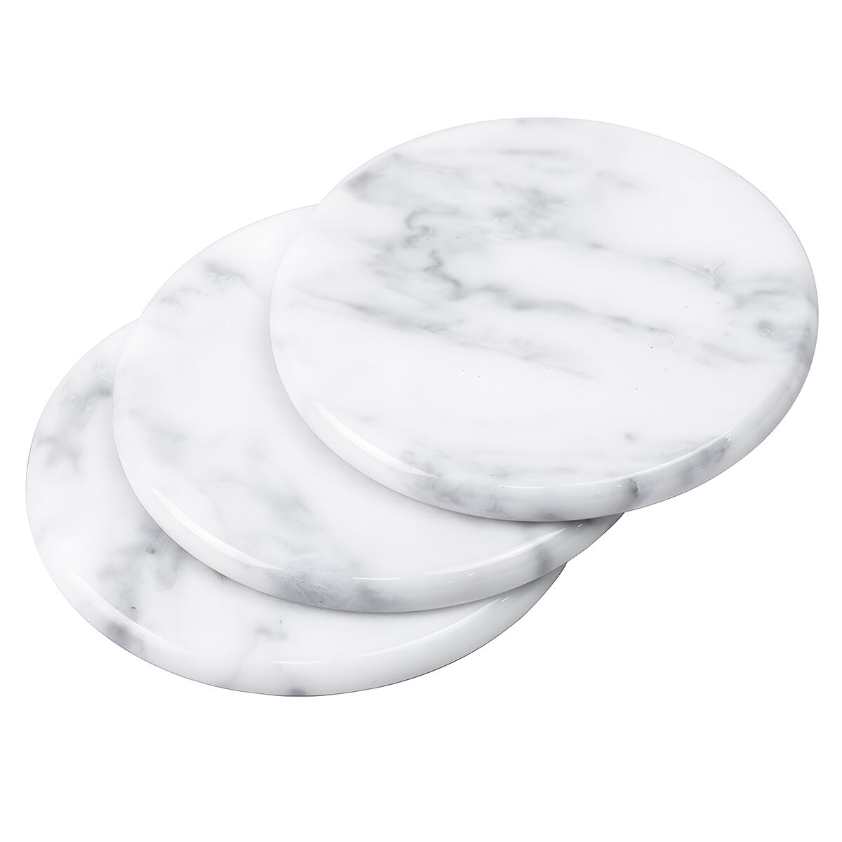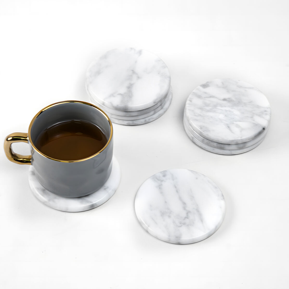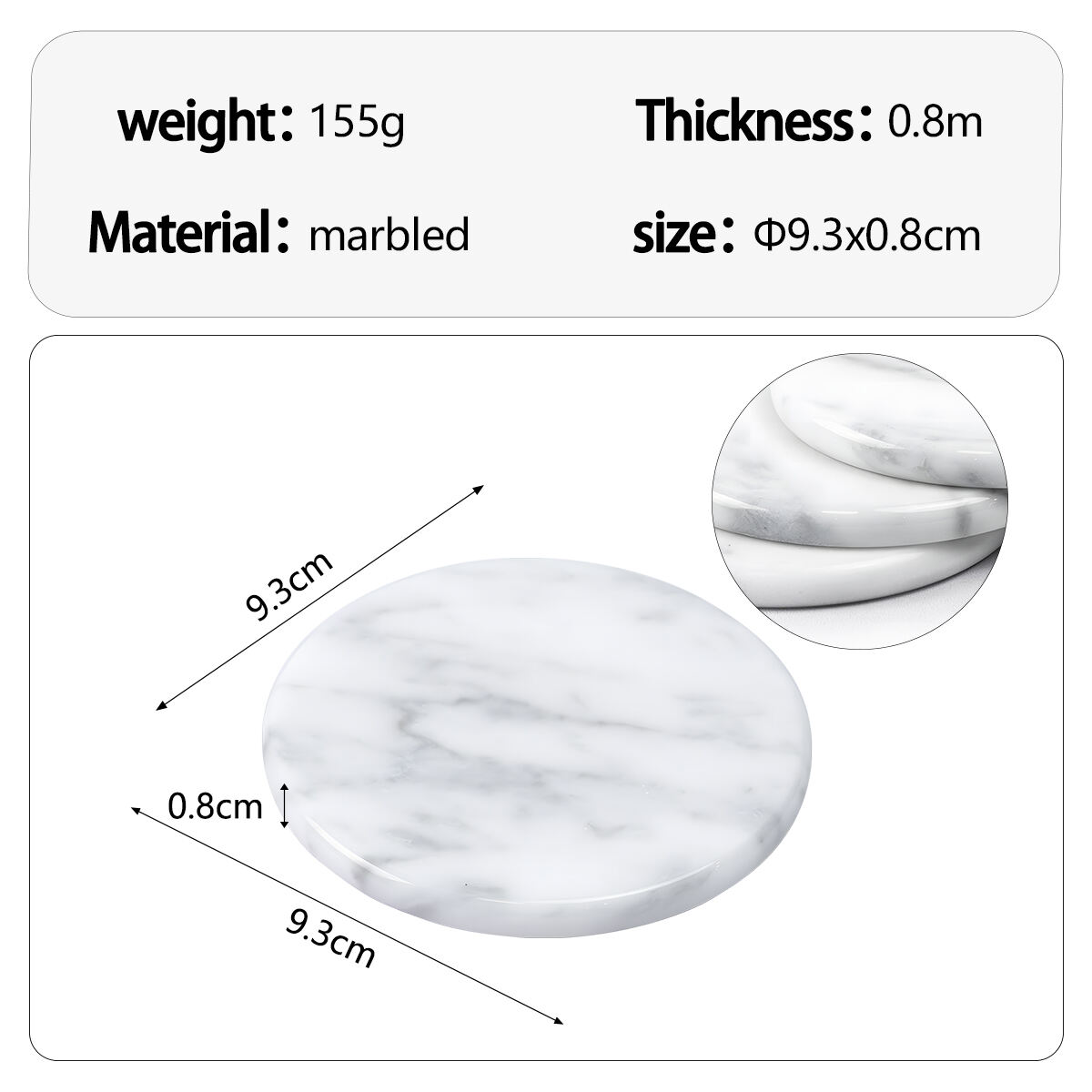 Start with a superior core product: our marble coasters. Precision-engineered from a solid marble composite, each 9.3cm x 0.8cm coaster provides a dependable barrier against heat rings and condensation. The inherent strength of the material ensures they won't warp or crack over time, offering your end-customers lasting value. Their non-porous surface is a practical choice, effortlessly wiped clean while maintaining a sophisticated, minimalist aesthetic that complements any interior design style.