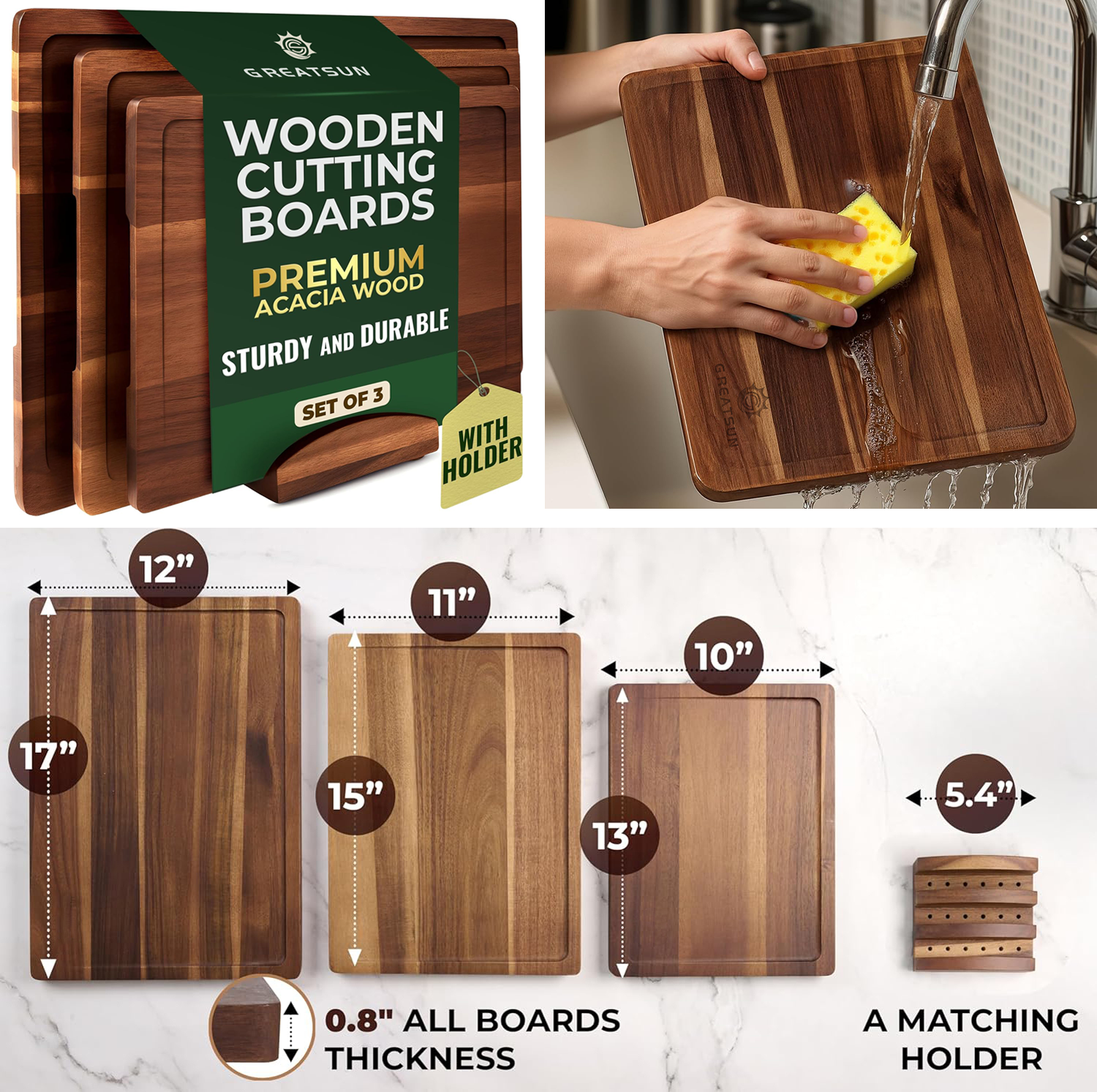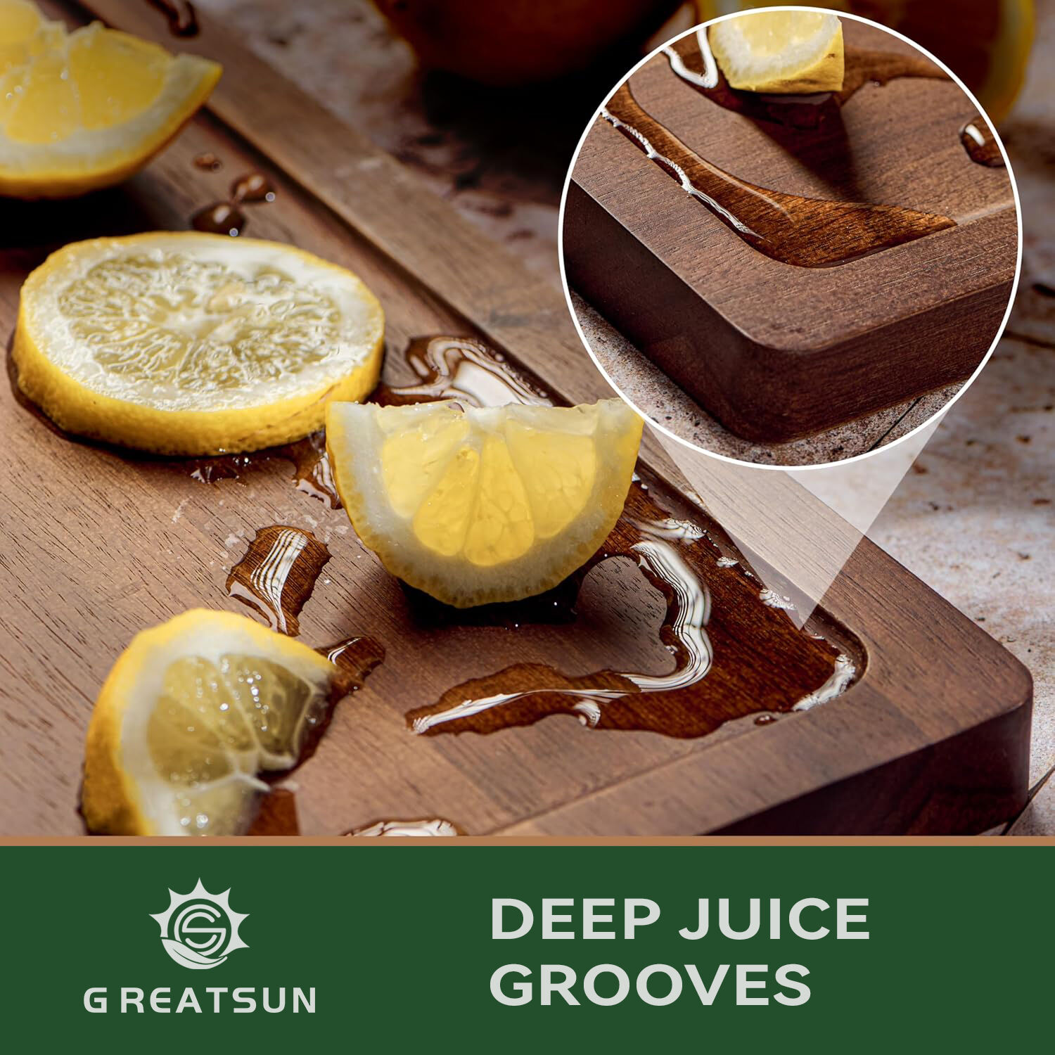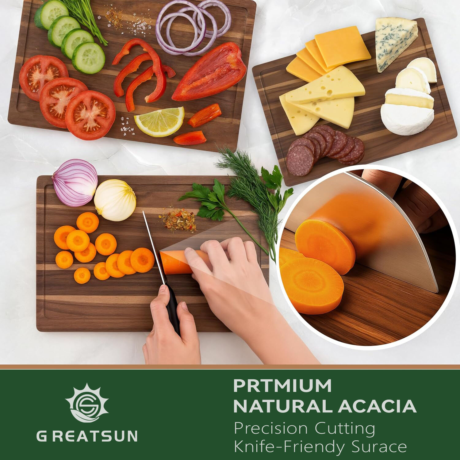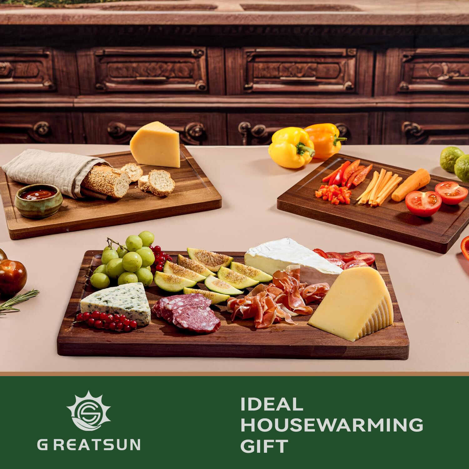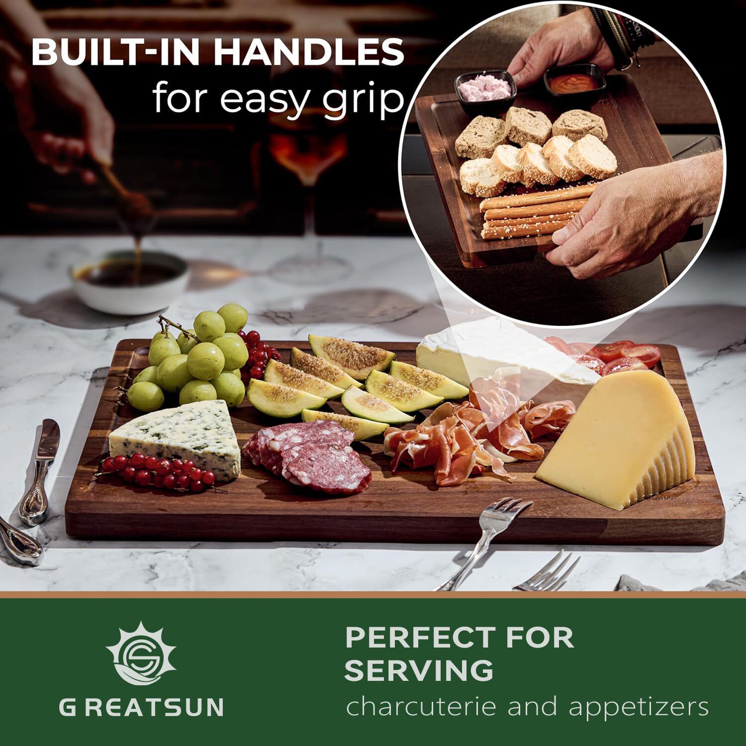 προνομιούχο δίσκος παρουσίασης από ξύλο ακακίας, σετ επιπλέον παχύτερου κοφτερού ταμπλό, κουζίνα με προσωπικοποιημένο δώρο για εγκατάσταση σε νέο σπίτι, αναστρέψιμο ταμπλό για κοπή κρέατος με βάση-στήριγμα, βιώσιμο ξύλινο πιάτο για χαρκουτερίες, επιφάνεια προετοιμασίας πιστοποιημένη από το FSC, συσκευασία δώρου για τις γιορτές με OEM, προμηθευτής ιδιωτικής ετικέτας για Amazon FBA, βαθιά αύλακα για συλλογή χυμών, ενσωματωμένες λαβές.