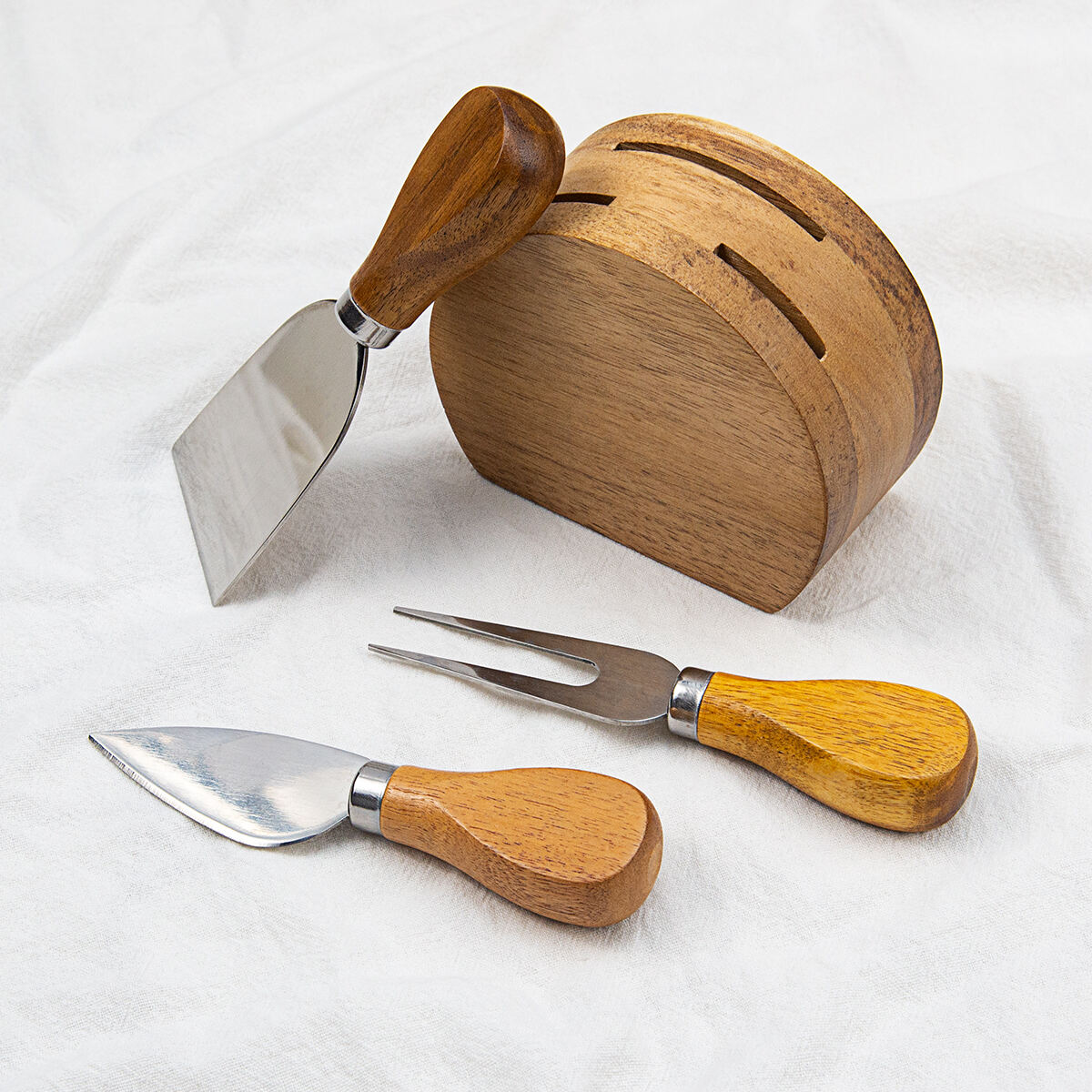OEM-akasiapuusta juustoveitsisetti gourmet-ruoalle | FDA-, LFGB-sertifioitu | Laserin kaiverrus