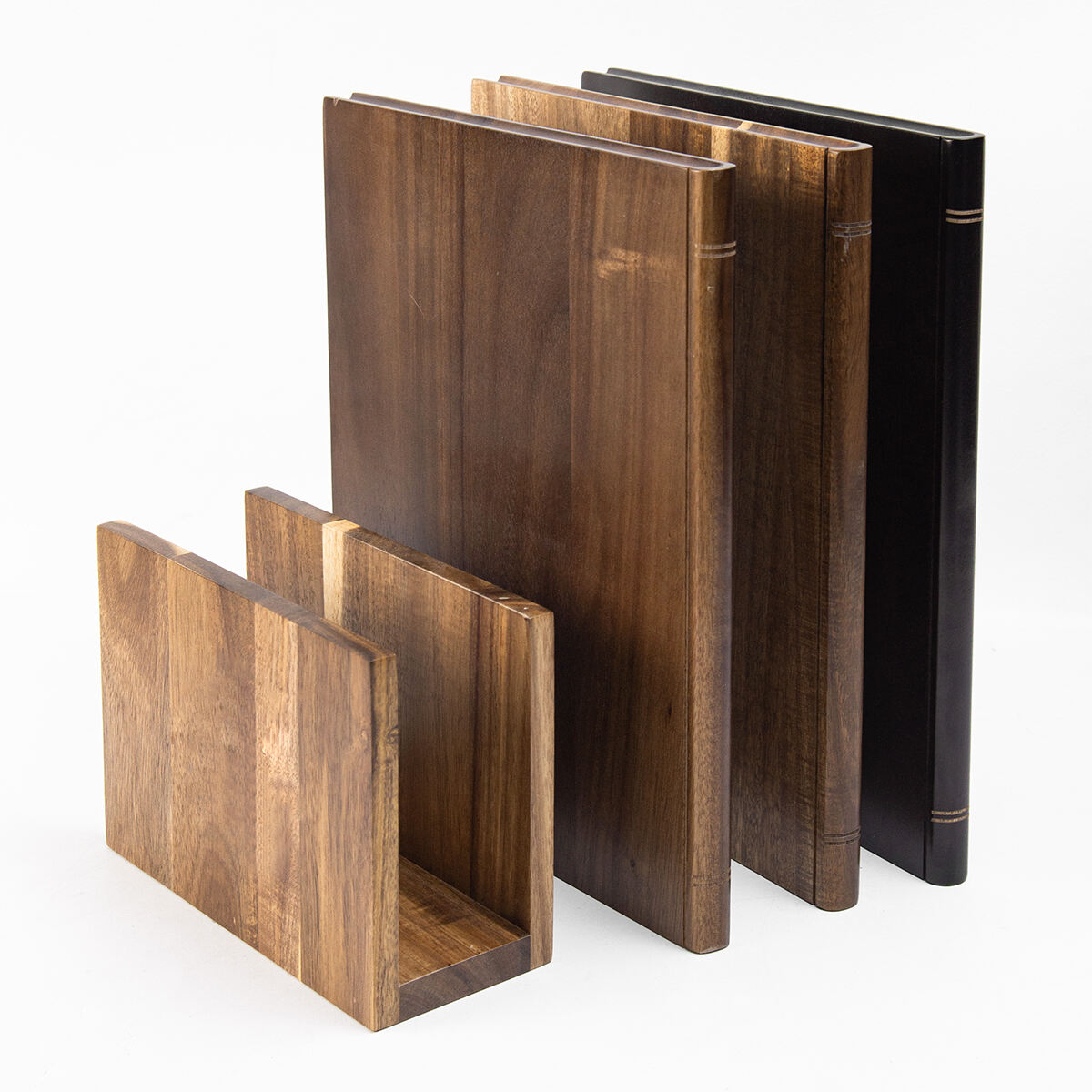 Imaginez un ensemble de planches à découper qui élève votre gamme d'ustensiles de cuisine du simple utilitaire à l'inoubliable. Notre ensemble en bois d'accacia, inspiré du dos de livres classiques, allie une fonctionnalité exceptionnelle à une touche décorative véritablement originale. Chacune des trois planches est conçue pour rappeler la tranche d'un livre, avec des finitions aux tons de bois variés, offrant un aspect riche et superposé. Elles se rangent soigneusement sur le présentoir inclus, créant une présentation compacte et élégante, tout autant objet de conversation que solution pratique. Ce n'est pas simplement un accessoire de cuisine parmi d'autres ; c'est une solution au design innovant, idéale pour vos clients les plus exigeants. Nous acceptons les commandes en gros et proposons une personnalisation OEM complète, incluant le marquage au laser et un emballage prêt-à-offrir, afin que ce produit vous soit entièrement dédié.