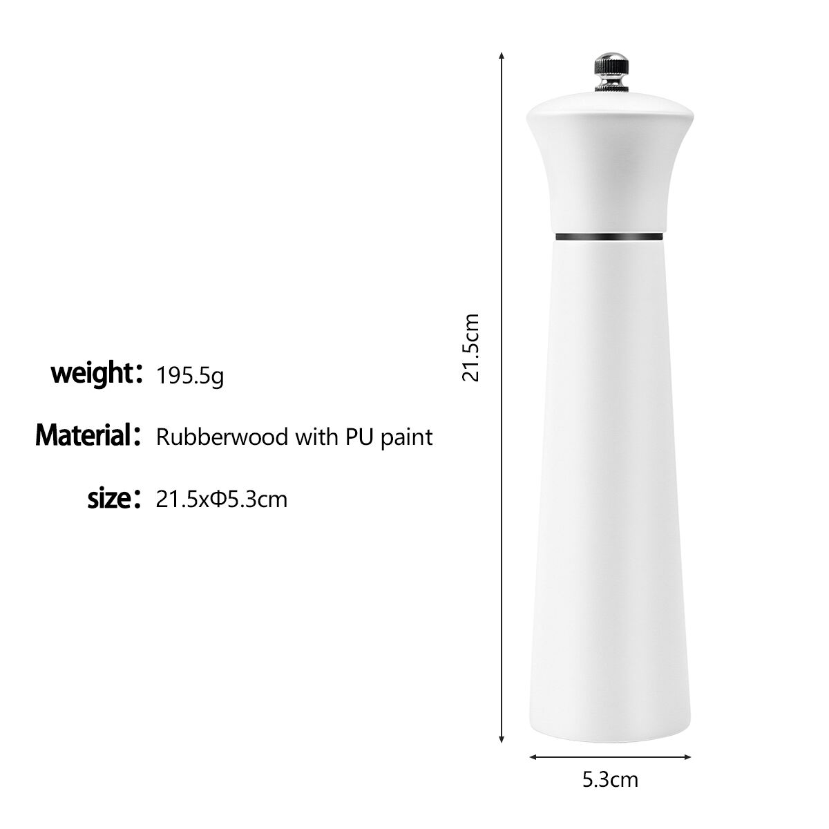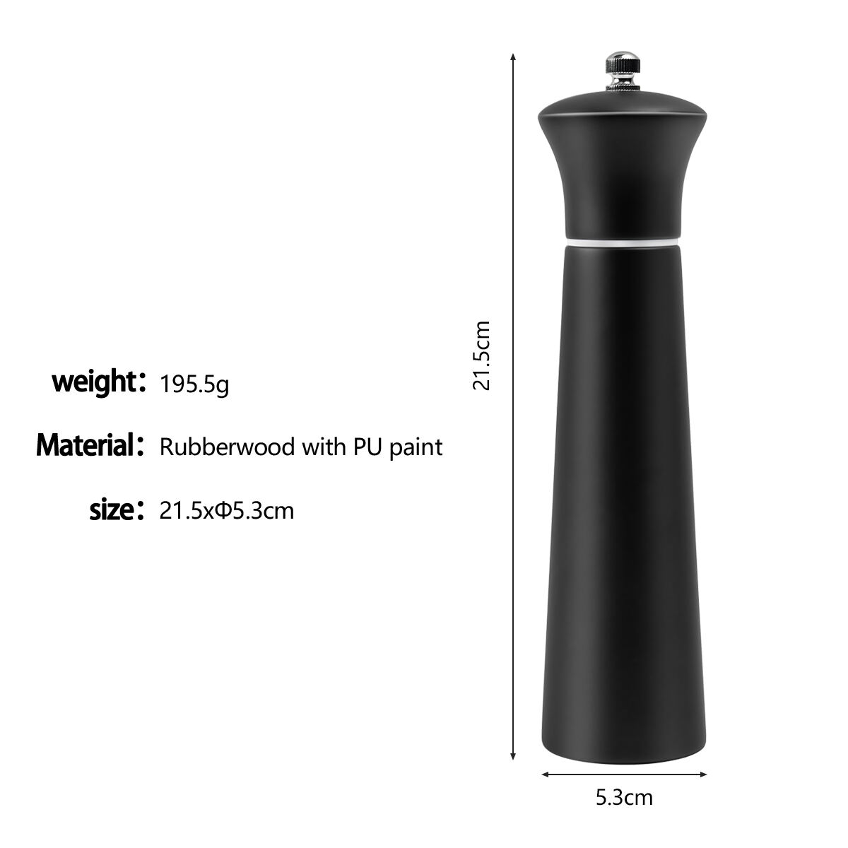 Specifications That Work: At 5.3 cm in diameter and 21.5 cm in height, it offers a substantial, ergonomic grip and a visible presence, whether sold online or in-store. The grinding mechanism is calibrated for consistent coarseness.